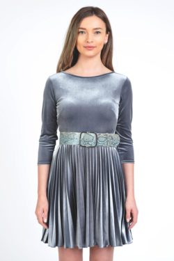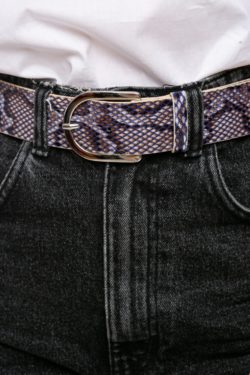 Curea de dama din piele naturala lila cu print croco si catarama metalica rotunda argintie 6cm