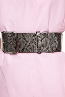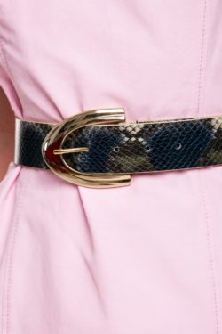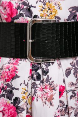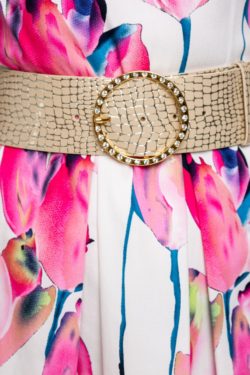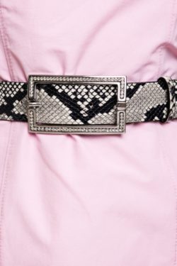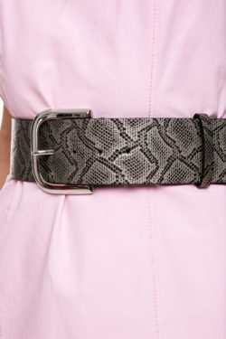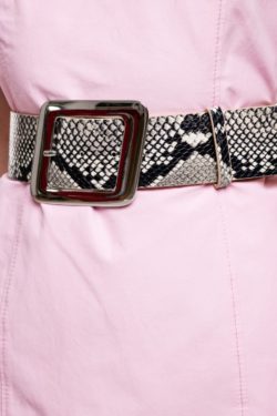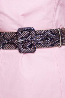 Curea din piele naturala roz-imprimeu si catarama metalica argintie 7cm