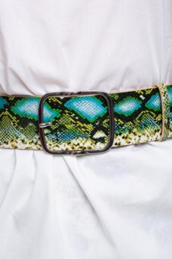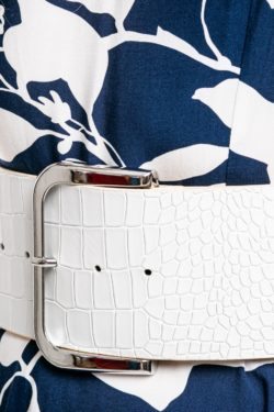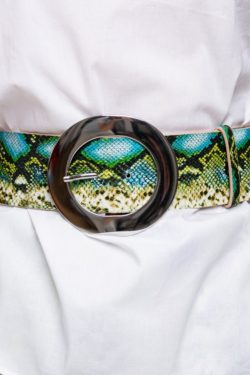 Curea din piele naturala albastra print croco cu catarama metalica argintie si strasuri 4cm