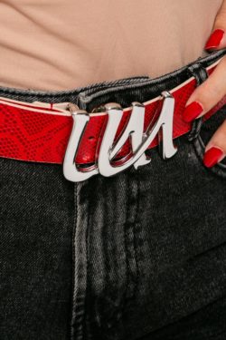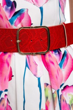 Curea de dama din piele naturala grena sidef-croco 6cm