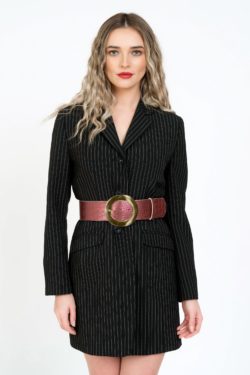 Curea din piele naturala grena cu catarama metalica rotunda aurie 6 cm