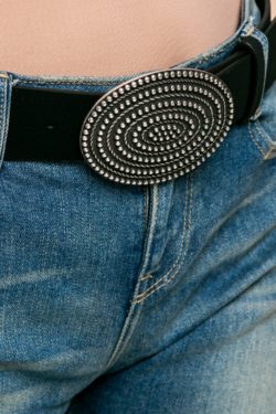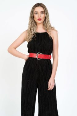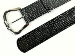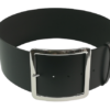 Curea din piele naturala neagra ,lucioasa prevazuta cu catarama metalica argintie lata de 8 cm.
