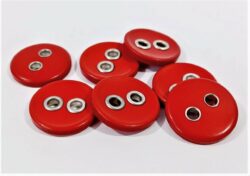 Nasturi rosii luciosi cu ocheti metalici argintii 2.5cm