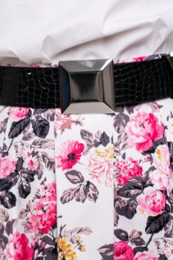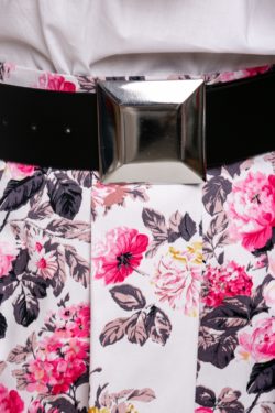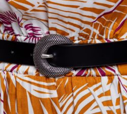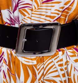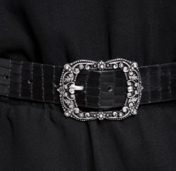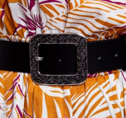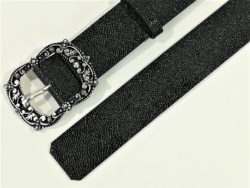 Curea piele naturala neagra cu catarama metalica argintie - motive florale,4cm.