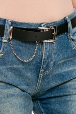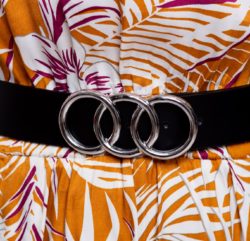 Curea din piele naturala neagra cu catarama metalica argintie - cercuri 4cm