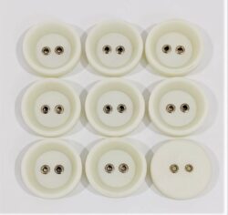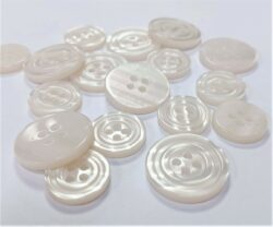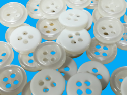 Nasturi din poliester cu doua gauri , albi sidefati ,diametru 10 mm .