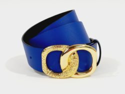 Curea din piele naturala indigo cu catarama metalica aurie 4cm