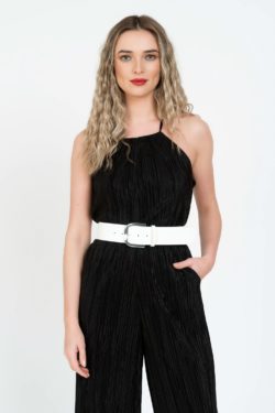 Brau de dama piele naturala neagra cu inchidere simpla si catarama argintie 5 cm