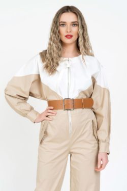 Curea din piele naturala camel cu catarama nylon aurie 4 cm