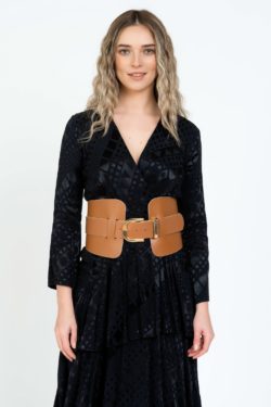 Brau piele naturala camel cu prindere simpla si catarama aurie laser 5cm