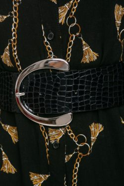 Curea din piele naturala rosie-print sarpe cu catarama metalica arginie ovala 3.5cm