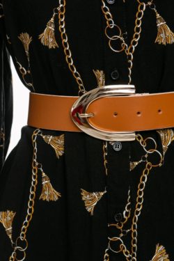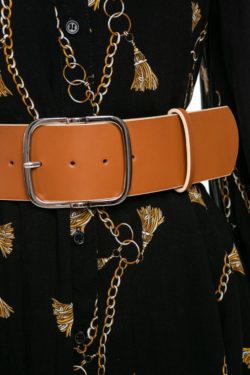 Curea piele naturala camel cu catarama metalica aurie patrata 4cm