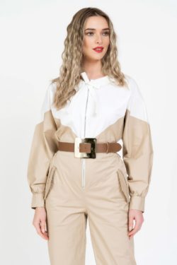 Curea piele naturala bej cu catarama metalica argintie ovala 3.5cm