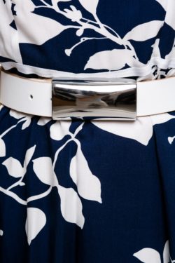 Curea piele naturala neagra cu catarama metalica argintie - motive florale,4cm.