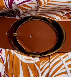 Curea din piele naturala camel cu catarama metalica aurie ovala ,6cm
