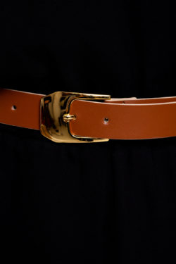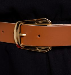 Curea din piele naturala,culoare camel cu catarama metalica aurie,latime 3.5cm