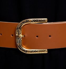 Curea din piele naturala,,culoare camel cu catarama metalica aurie cu model laser,latime 5cm
