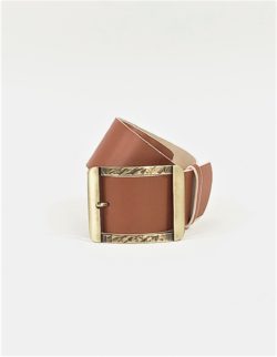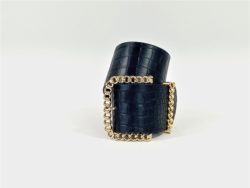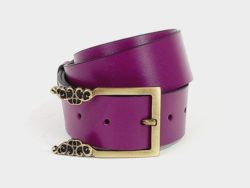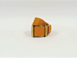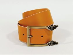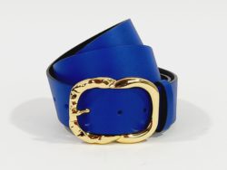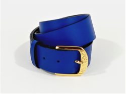 Curea din piele naturala indigo cu catarama metalica aurie 4cm