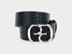 Curea din piele naturala neagra cu catarama argintie 4 cm