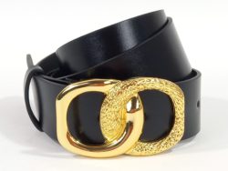 Curea din piele naturala neagra cu catarama aurie,4cm