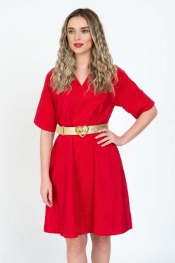 Set dama doua piese format din plic si curea piele naturala rosie metalizata .