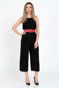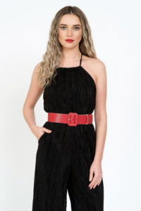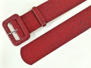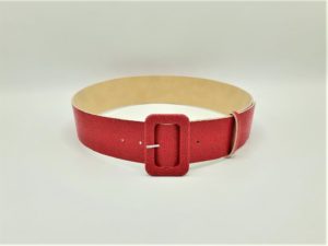 Curea din piele sintetica rosie cu model prevazuta cu