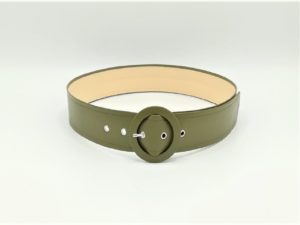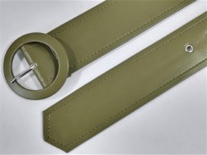 Curea din piele sintetica kaki cusuta pe margini prevazuta cu