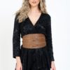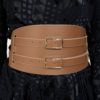Brau de dama din piele naturala camel prevazut cu inchidere dubla formata din doua curele din piele naturala camel cu doua catarame metalice aurii de 2.5cm