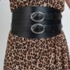 Brau de dama din piele naturala neagra prevazut cu inchidere dubla formata din doua curele din piele naturala neagra si catarame metalice argintii cu latime de 3.5cm