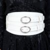 Brau din piele naturala alba cu print croco prevazut cu inchidere dubla formata din catarame metalice argintii 3.5 cm si curele din piele alba-croco in ton cu braul .