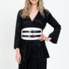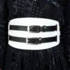 Brau din piele naturala alba print croco prevazut cu inchidere dubla formata din catarame metalice argintii lucioase 2.5cm si curele din piele neagra .