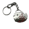 Breloc metalic in forma de peste,culoare argintiu /rosu prevazut cu carabiniera metalica pentru prindere .