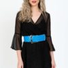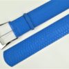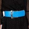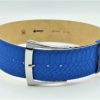Curea de dama din piele naturala albastra cu print ce imita pielea de crocodil prevazuta cu catarama metalica argintie,latime 7 cm.