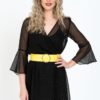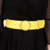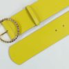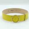 Curea din piele naturala galbena prevazuta cu catarama metalica rotunda, aurie si strasuri aplicate,latime 6 cm .