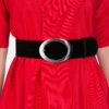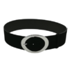 Curea de dama din piele sintetica neagra -nabuc cu aspect mat prevazuta cu catarama metalica ovala argintie,latime 6cm .