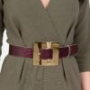 Curea piele naturala bordo print sarpe cu catarama metalica aurie patrata 4cm