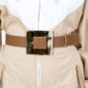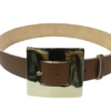 Curea din piele naturala camel ,prevazuta cu catarama metalica aurie patrata cu latime de 4cm