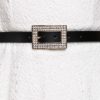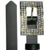 Curea din piele naturala culoare neagra,lucioasa prevazuta cu catarama metalica aurie si strasuri 2cm.Marimea S are lungimea totala 95 cm si talia de 75 cm (reprezinta lungimea masurata din bara cataramei pana la gaura din mijloc a curelei). Marimea M are lungimea totala 105 cm si talia de 85 cm (reprezinta lungimea masurata din bara cataramei pana la gaura din mijloc a curelei).