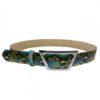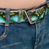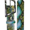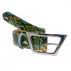 Curea din piele naturala print sarpe-multicolora prevazuta cu catarama metalica argintie trapezoidala. Latime 3.5 cm. Marimea S are lungimea totala 95 cm si talia de 75 cm (reprezinta lungimea masurata din bara cataramei pana la gaura din mijloc a curelei). Marimea M are lungimea totala 105 cm si talia de 85 cm (reprezinta lungimea masurata din bara cataramei pana la gaura din mijloc a curelei).