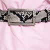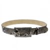 Curea din piele naturala culoare imitatie sarpe prevazuta cu catarama metalica si strasuri. Latime 4 cm. Marimea S are lungimea totala 95 cm si talia de 75 cm (reprezinta lungimea masurata din bara cataramei pana la gaura din mijloc a curelei).Marimea M are lungimea totala 105 cm si talia de 85 cm (reprezinta lungimea masurata din bara cataramei pana la gaura din mijloc a curelei).