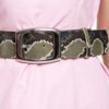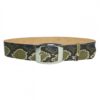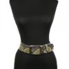 Curea din piele naturala print sarpe -multicolora prevazuta cu catarama metalica argintie. Latime 5 cm. Marimea S are lungimea totala 95 cm si talia de 75 cm (reprezinta lungimea masurata din bara cataramei pana la gaura din mijloc a curelei). Marimea M are lungimea totala 105 cm si talia de 85 cm (reprezinta lungimea masurata din bara cataramei pana la gaura din mijloc a curelei).