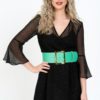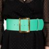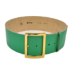 Curea din piele naturala verde cu aspect mat ,prevazuta cu catarama metalica dreptunghiulara aurie cu latime de 8 cm
