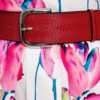 Curea din piele sintetica rosie cu model aplicat si catarama metalica argintie 2cm