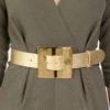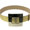 Curea din piele naturala aurie prevazuta cu catarama metalica patrata aurie cu latime de 4 cm