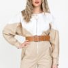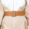 Curea din piele naturala maro-camel cu catarama metalica argintie 6cm .