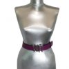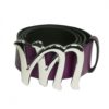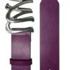 Curea din piele naturala mov/lila prevazuta cu catarama metalica cu ornamente argintie,latime 4cm. Marimea S are lungimea totala 95 cm si talia de 75 cm (reprezinta lungimea masurata din bara cataramei pana la gaura din mijloc a curelei). Marimea M are lungimea totala 105 cm si talia de 85 cm (reprezinta lungimea masurata din bara cataramei pana la gaura din mijloc a curelei).