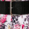 Curea din piele naturala neagra cu print piele crocodil prevazuta cu catarama metalica argintie lata de 8 cm. Marimea S are lungimea totala 95 cm si talia de 75 cm (reprezinta lungimea masurata din bara cataramei pana la gaura din mijloc a curelei). Marimea M are lungimea totala 105 cm si talia de 85 cm (reprezinta lungimea masurata din bara cataramei pana la gaura din mijloc a curelei).