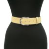 Curea din piele sintetica bej cu model prevazuta cu catarama metalica argintie, latime 4cm. Marimea S are lungimea totala 95 cm si talia de 75 cm (reprezinta lungimea masurata din bara cataramei pana la gaura din mijloc a curelei). Marimea M are lungimea totala 105 cm si talia de 85 cm (reprezinta lungimea masurata din bara cataramei pana la gaura din mijloc a curelei).