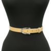 Curea din piele sintetica bej deschis cu catarama metalică argintie 2cm