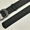 Curea piele sintetica neagra cu catarama metalica flori antic silver 4 cm